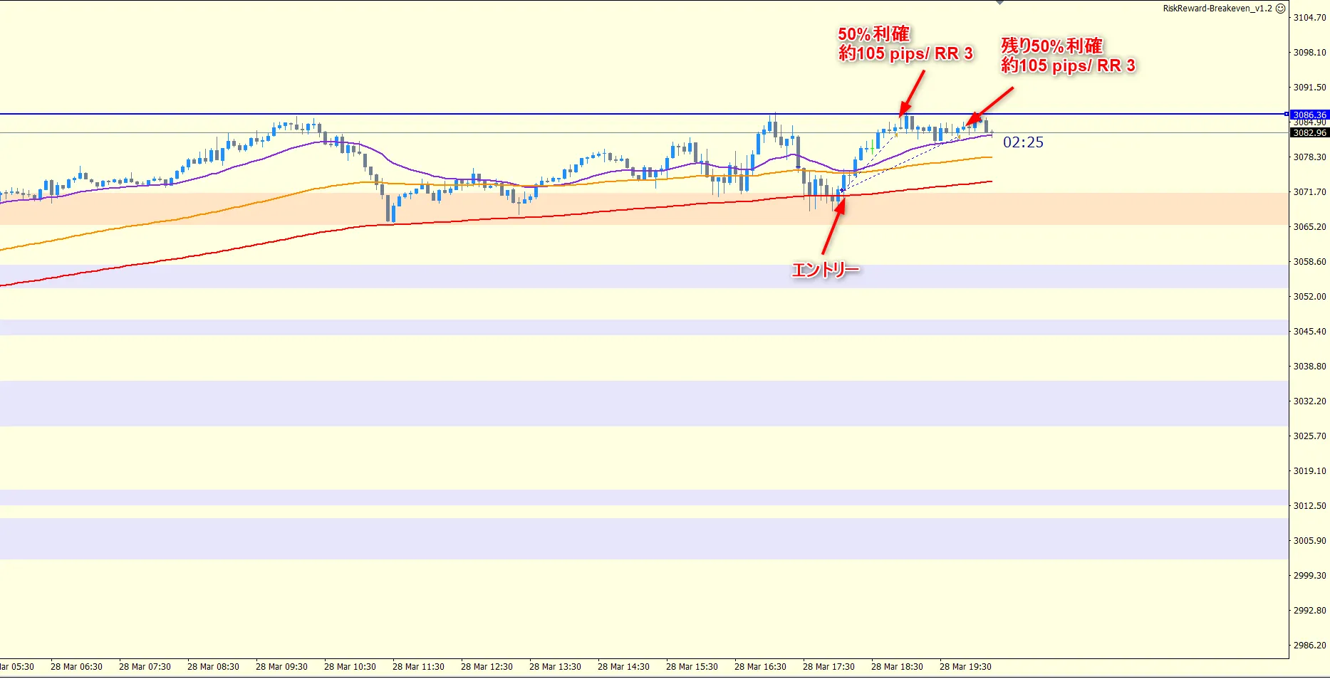 リアルトレード (ゴールド) 2025年3月28日(金) RR 3 (105pips利確)