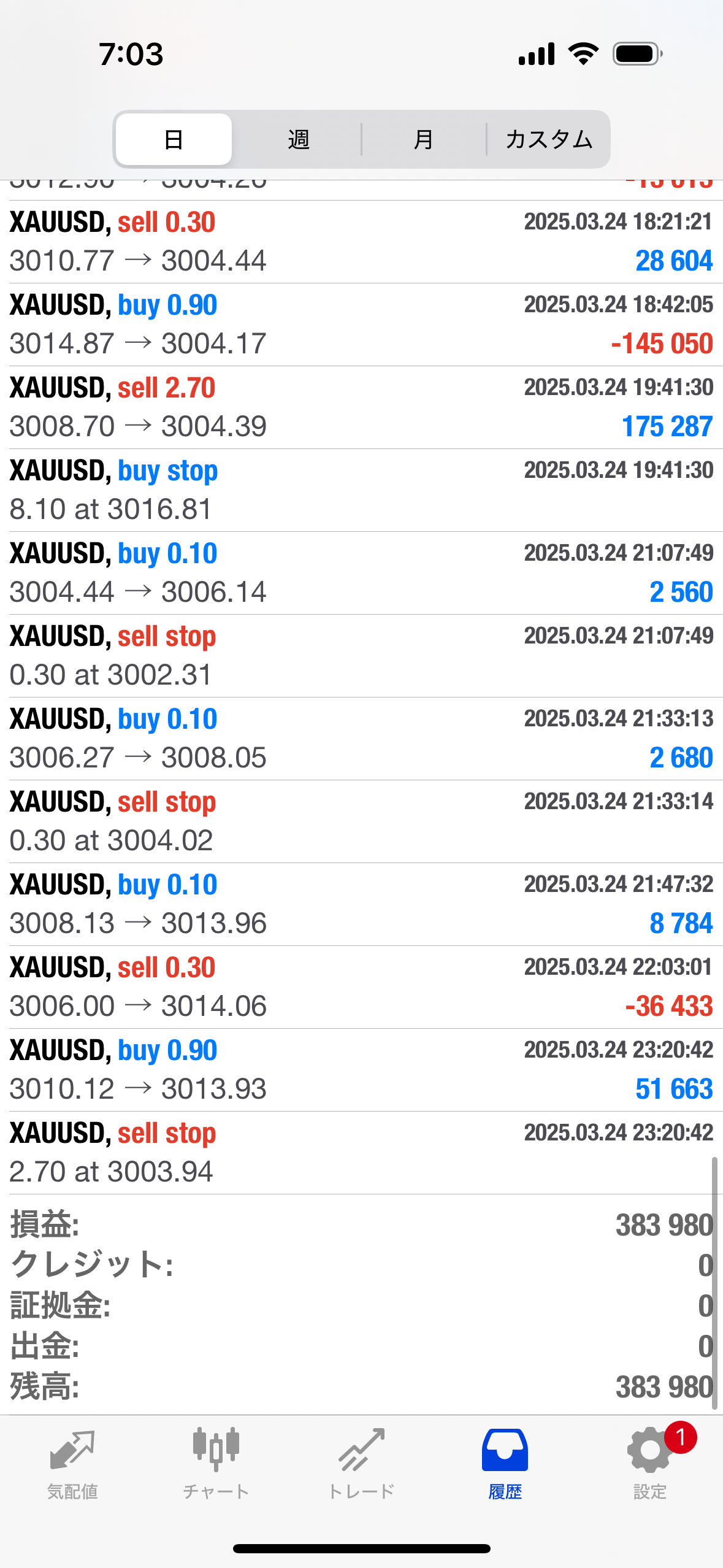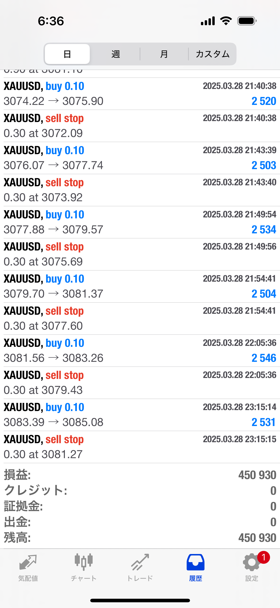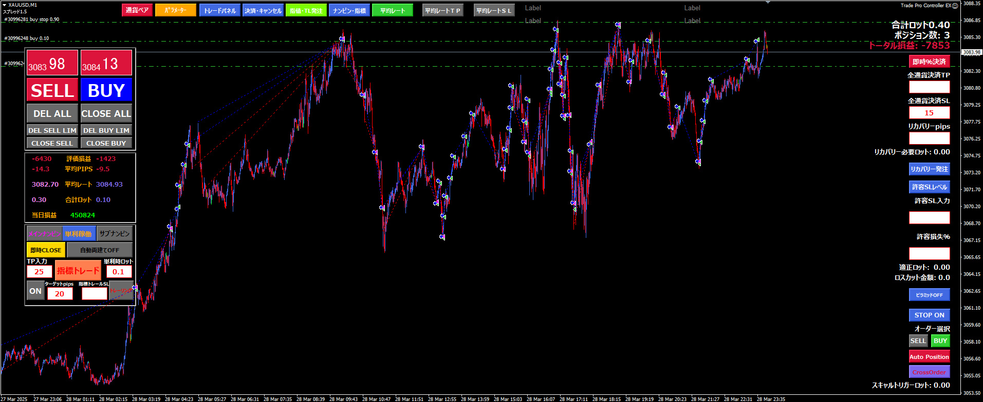 トレードプロコントローラーの逆指値両建てロジック! XAUUSD 3月24日~3月28日 週間結果!