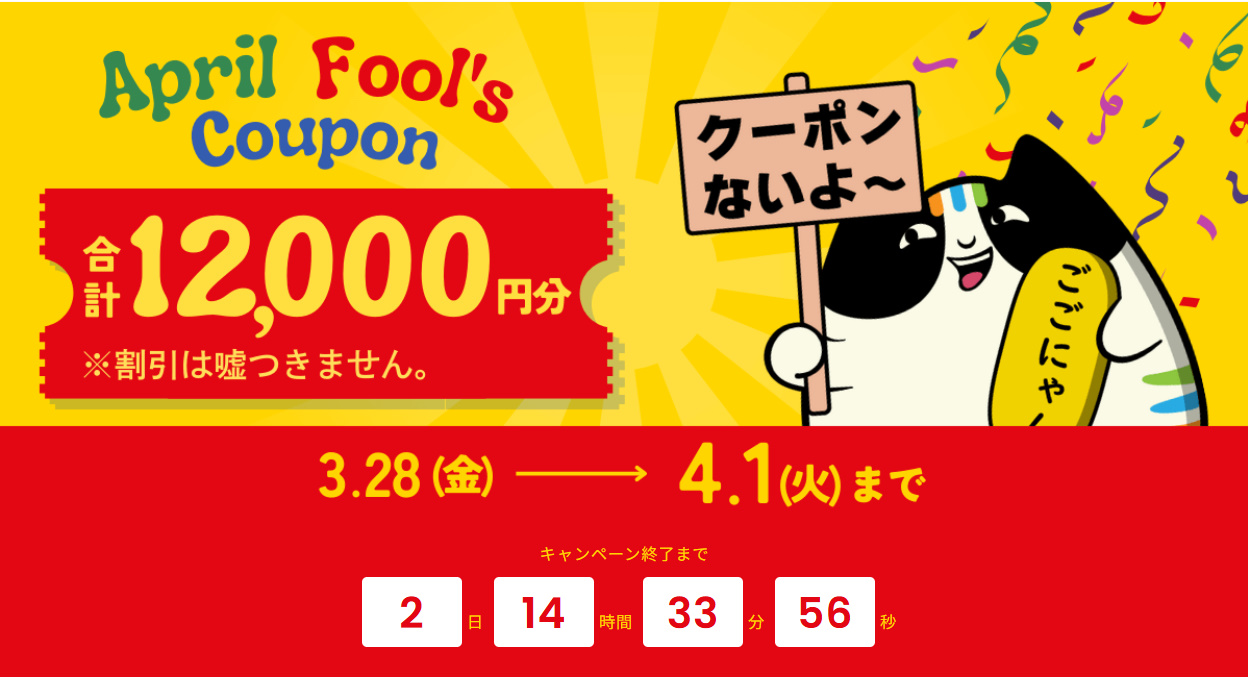 その前に、4月1日までエイプリルフールクーポンが発行されています。