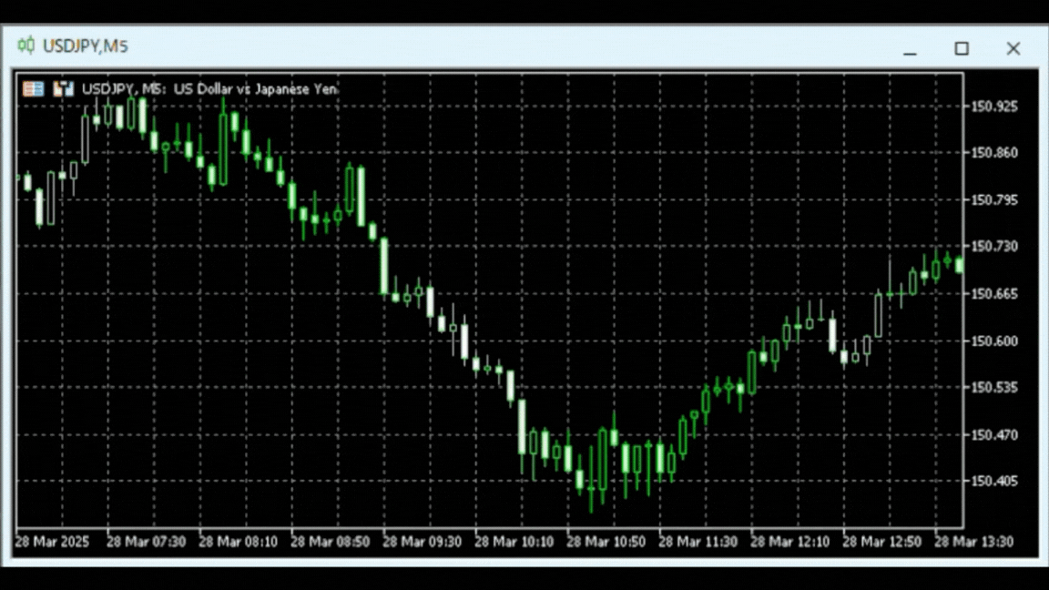 2025年3月28日 ドル円 5分足 +75pips