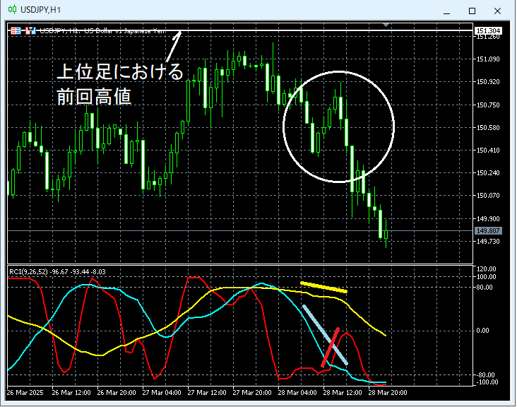 3月28日のドル円のチャートを使った説明になっております。