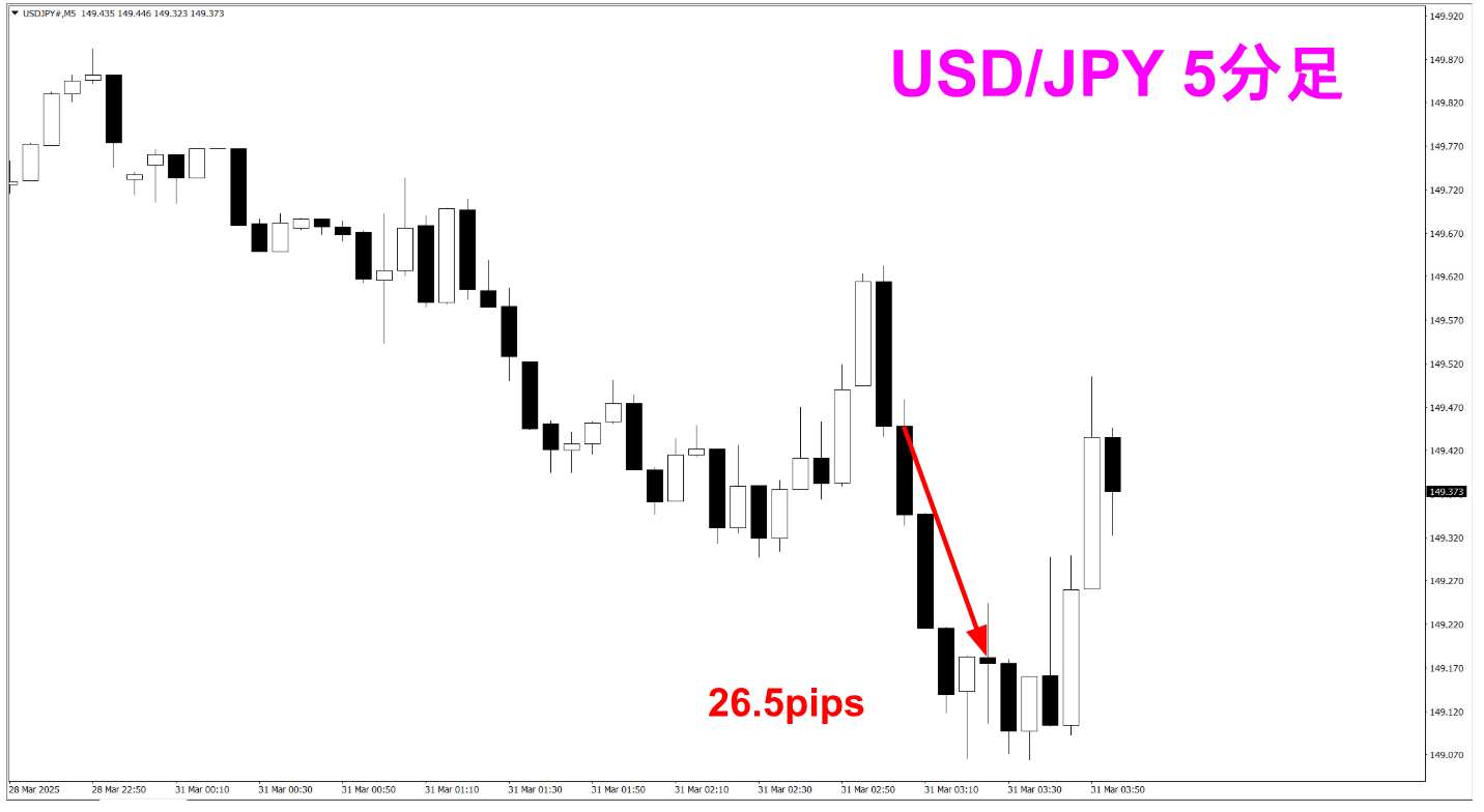 イメージとしては、1回のトレードで数分で完結するようなトレードになります。