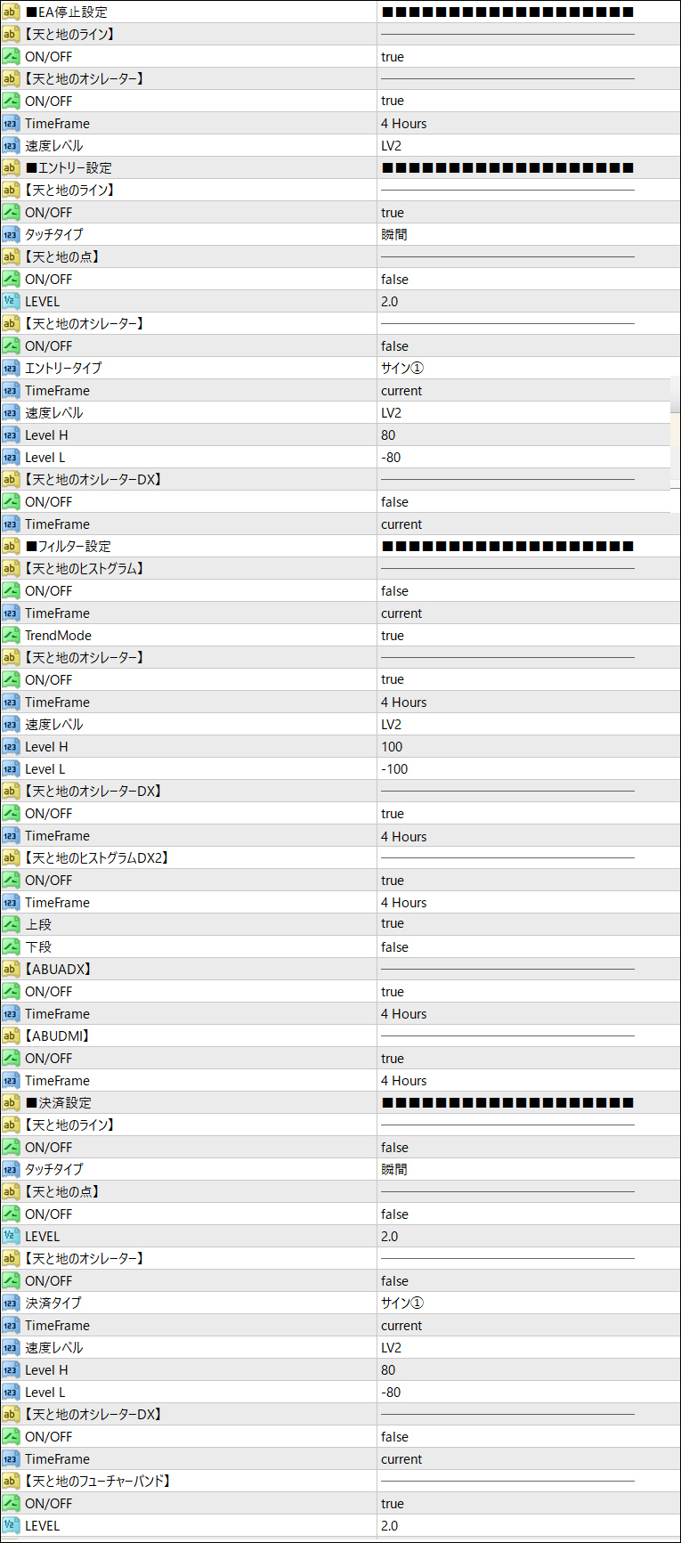 私が今回の相場でDSATEAをセットするならば、パラメーターは以下のように設定します。ご参考までに。