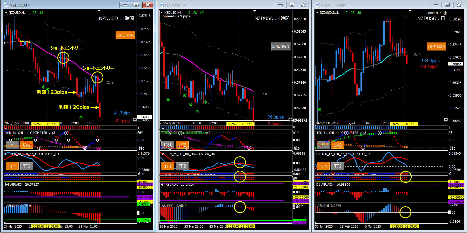 ニュージードル(NZDUSD)/ 1時間足+4時間足+日足 過去検証