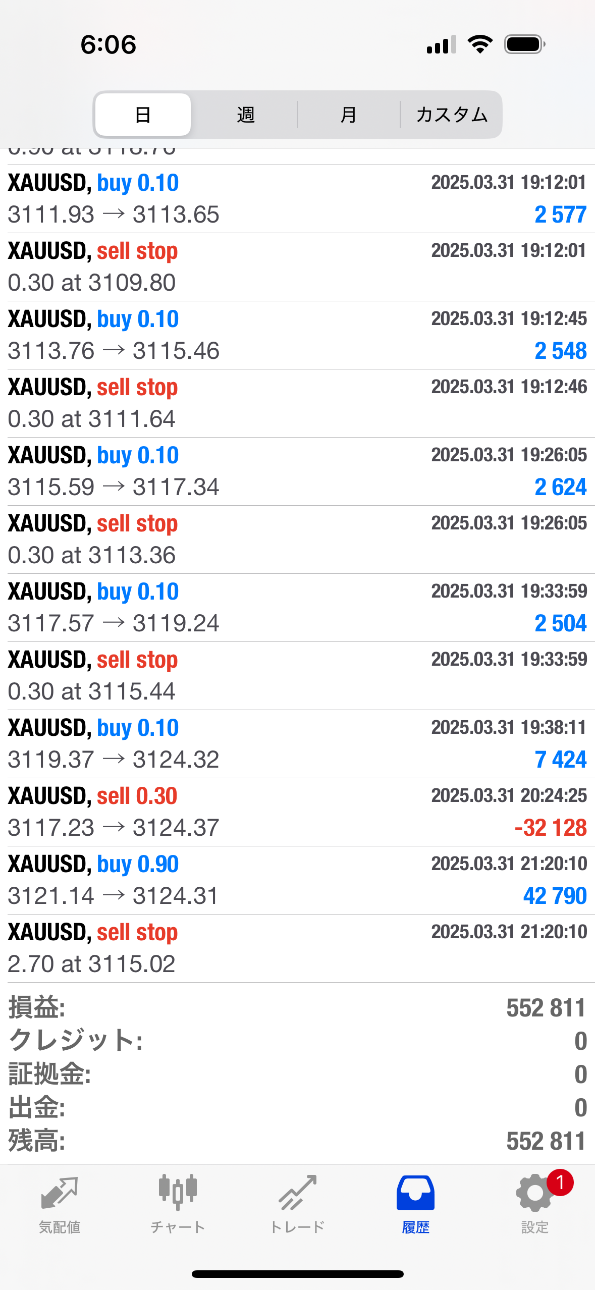 トレードプロコントローラーの逆指値両建てロジック! 3月31日 ゴールドでの稼働状況!3月トータル月利90%!