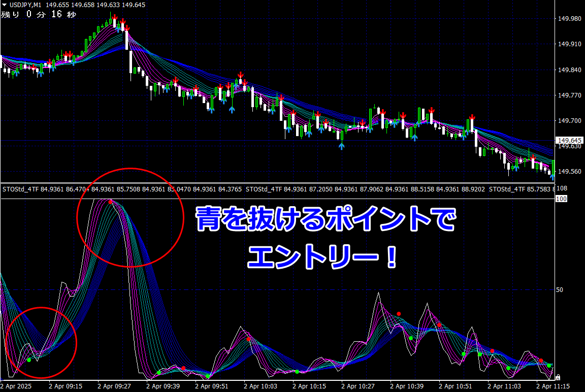 従いまして、上昇にしろ、下落にしろ、エントリーのねらい目は