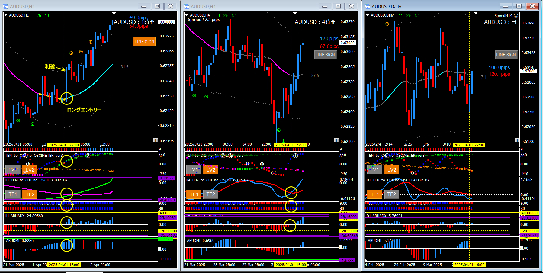 オジドル(AUDUSD)/ 1時間足+4時間足+日足 過去検証