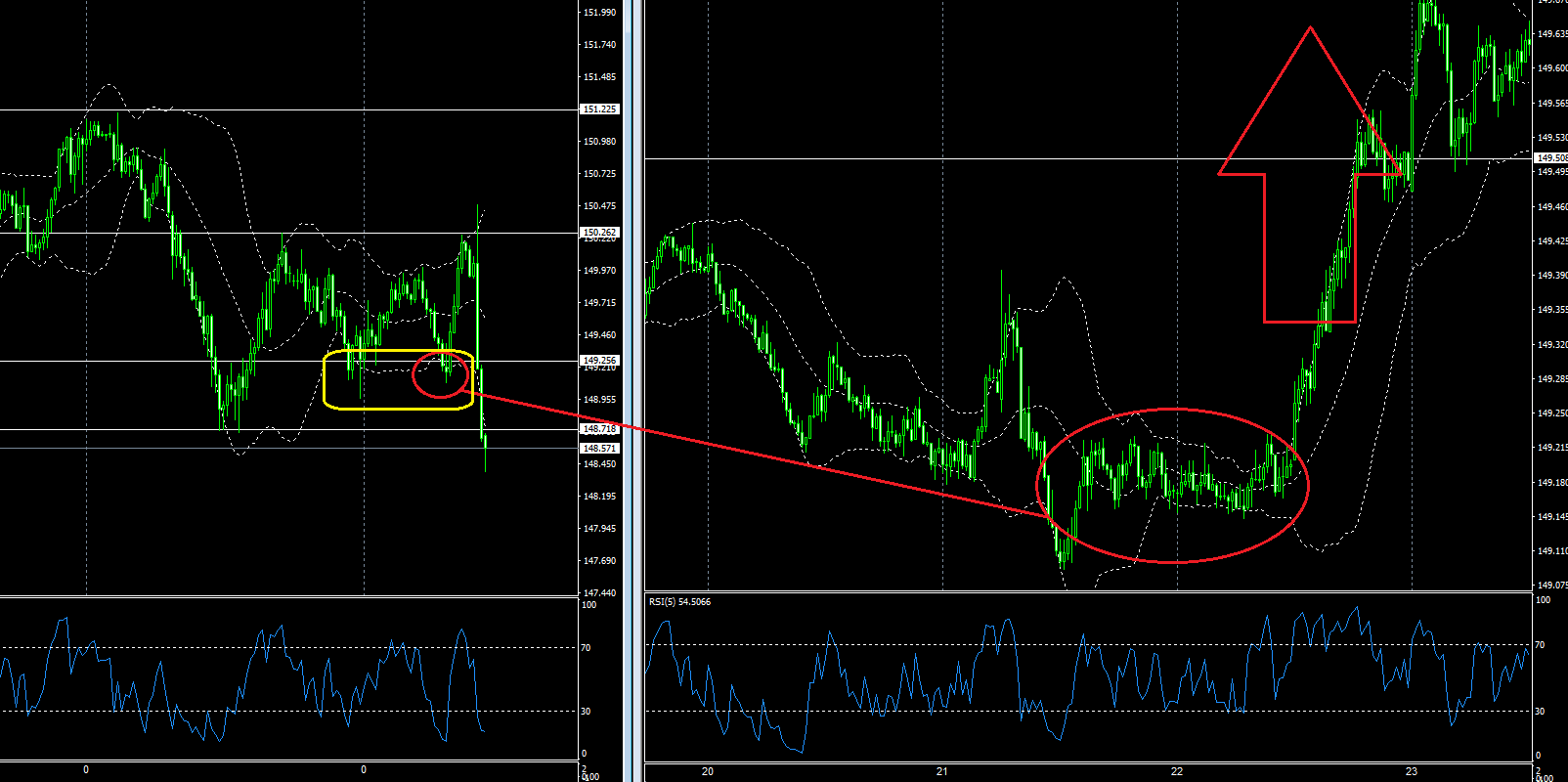 昨日のドル円は、5分足億トレチャートの方が全体像は掴みやすかったかもしれません。
