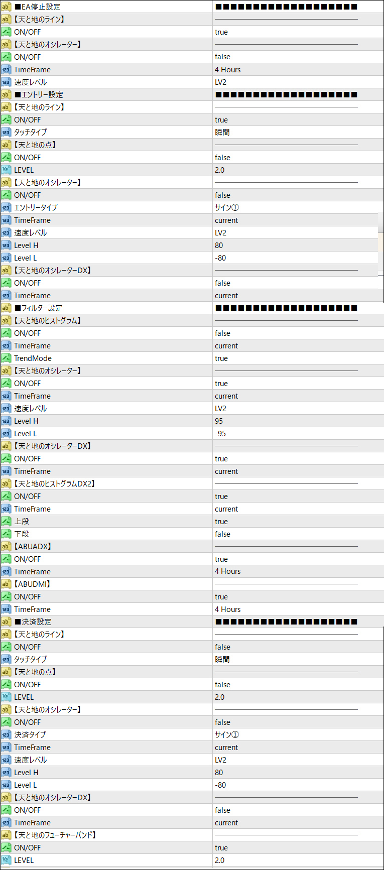 私が今回の相場でDSATEAをセットするならば、パラメーターは以下のように設定します。ご参考までに。