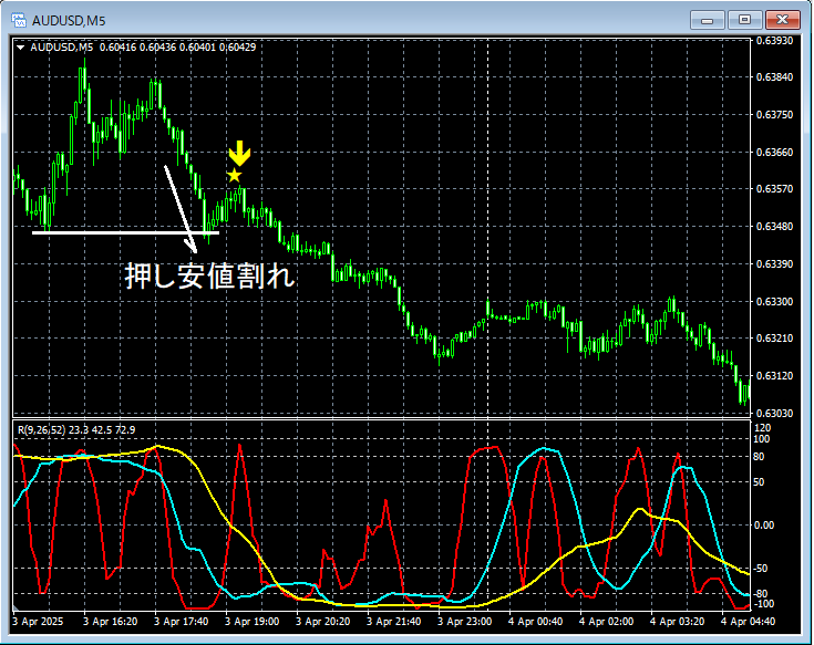 【RCIを極めて勝つ!!】押し安値割れとmBDSRの戻り売りサイン AUDUSD 5分足