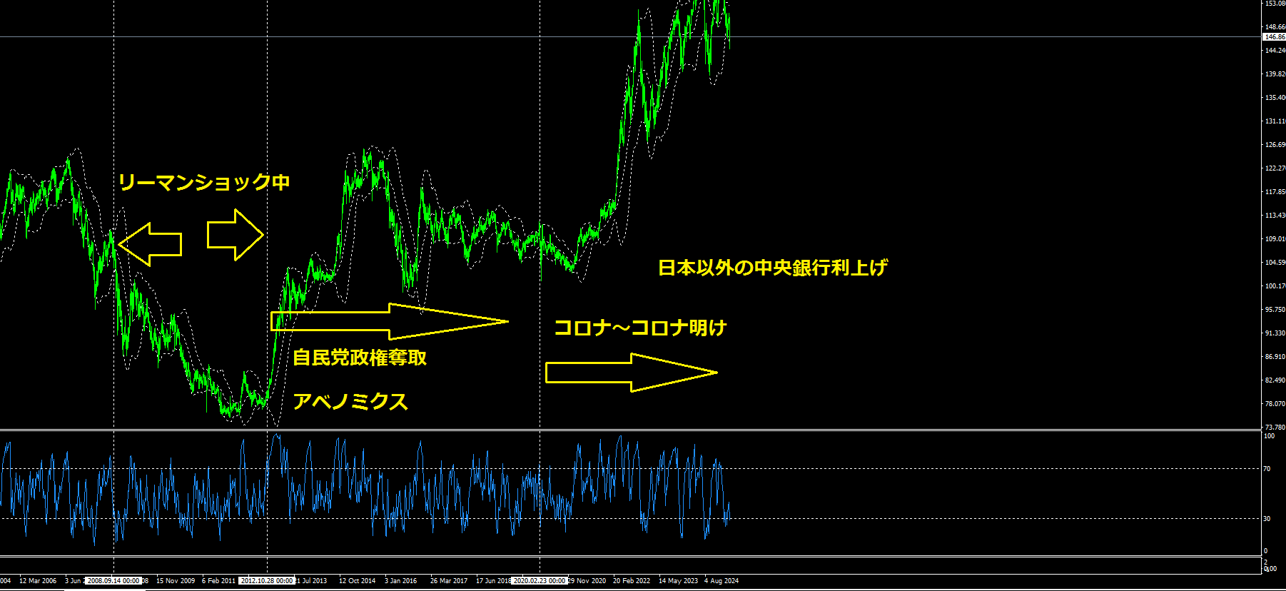 読者さんの中で20代30代の方がいらっしゃれば、過去を見直すと言う点でも多少は役に立つと思いますので、ドル円の遍歴を見て頂きたいと思います。