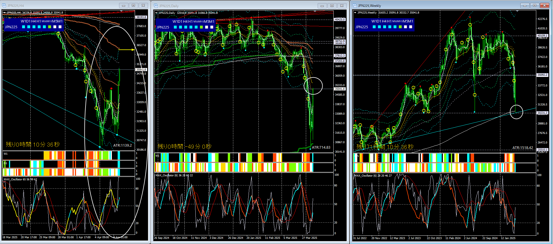 トランプの相互関税措置の実施が90日延期されるという発表により、一気にリスクオフが解消される。