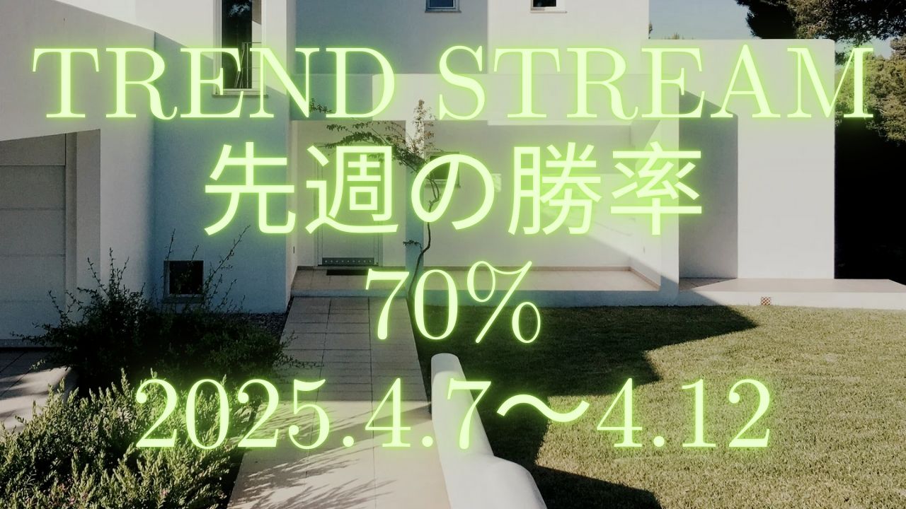 <勝率70%> 先週の成績まとめ ”TrendStream” 全銘柄24時間シグナル配信システム 2025.4.7~4.12【全14銘柄の週間成績 / バックテスト結果】ここでしか手に入らない ”自動決済トレールEA” & ”3Step Trade” 解説PDFが無料特典です!