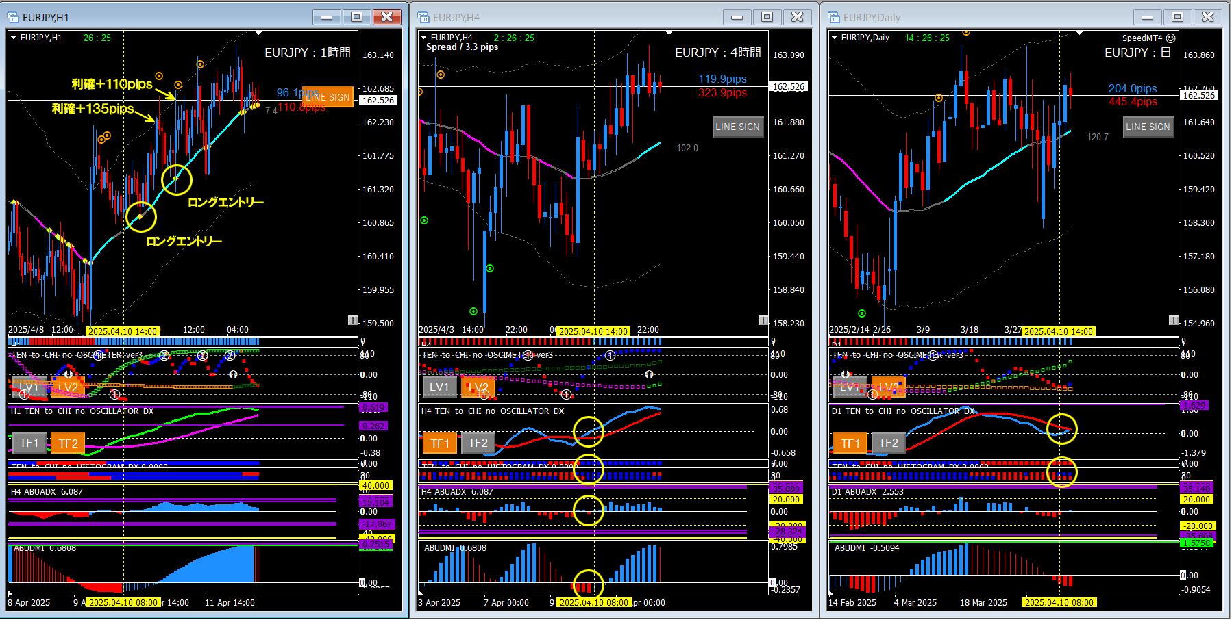 【2025年4月14日】天と地のインジケーターのデイスイング手法検証(ユロ円)