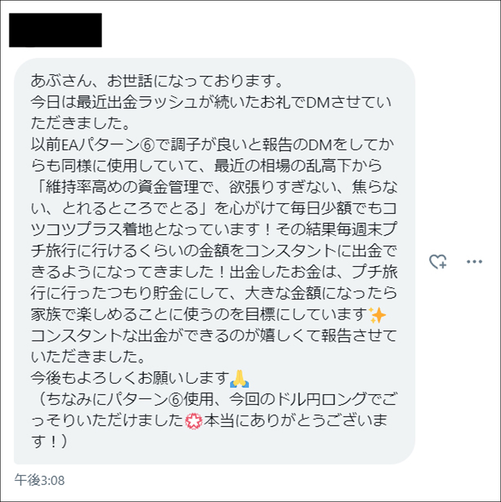 ・下記のリンクの記事ではユーザー様やモニター様からの貴重なDM、レビュー、ポストなどをご紹介させていただいております。勝ち報告を始め、有益な内容のDMを厳選しておりますので、きっと皆様の参考になると思います。随時更新しておりますので、お時間ある時にでも是非お読みください。