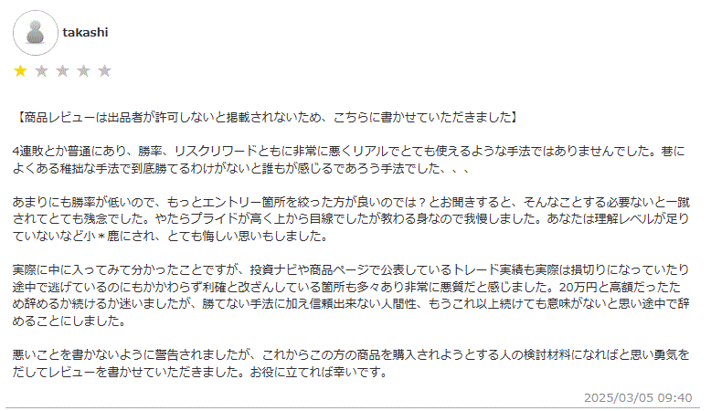 この方は、運営側から商品レビューは許可を取ってから配信してください。という警告をも聞かず