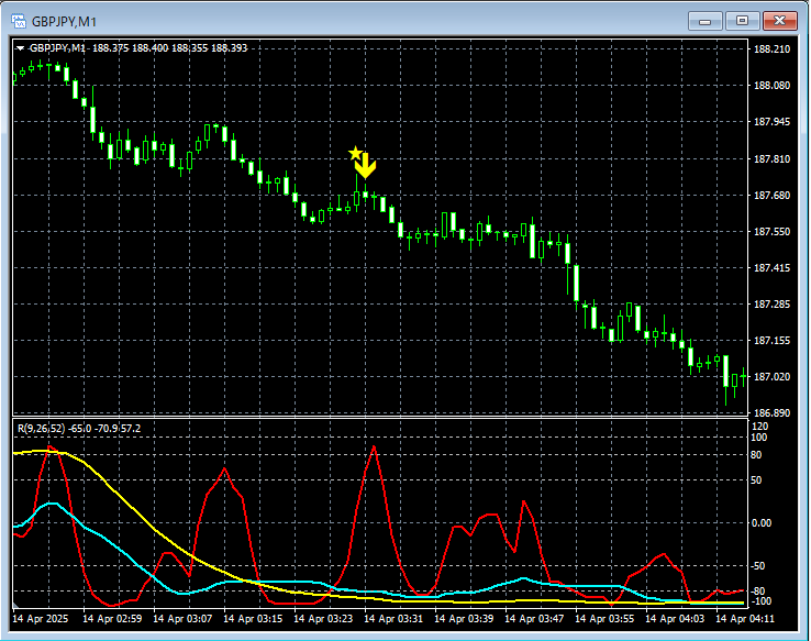 ポンド円 GBPJPY 1分足 2025年4月14日