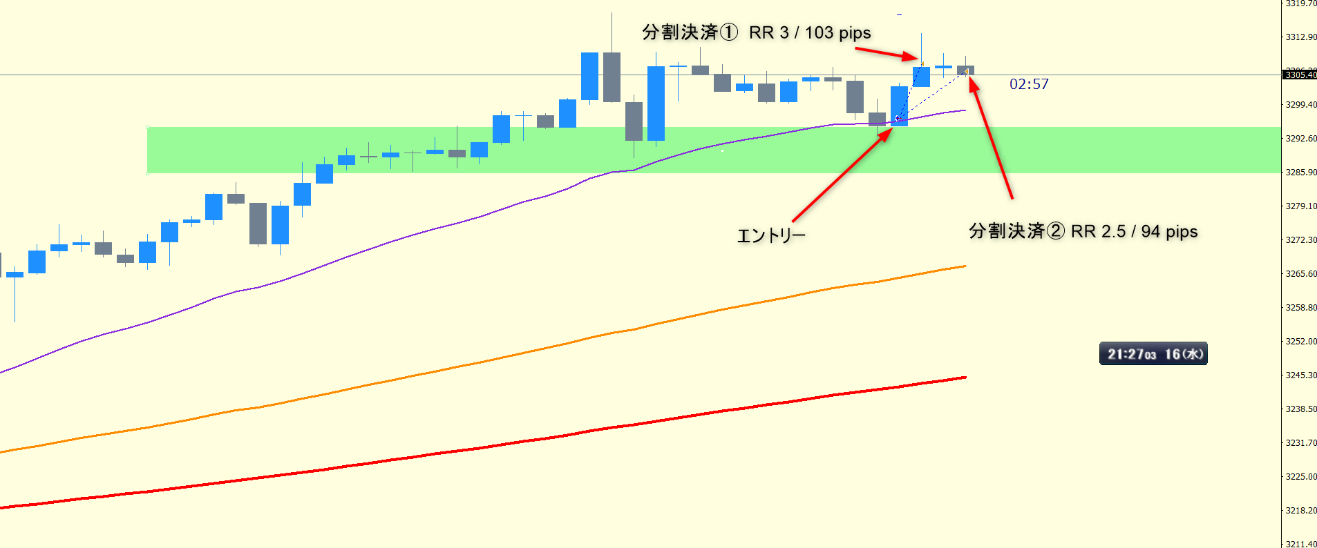 ? RR 2.5 / +94pips (重要指標発表前にイグジット)
