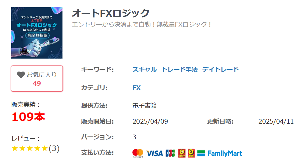 オートFXロジックに関してですが、販売してまだ1週間程経ちましたが、