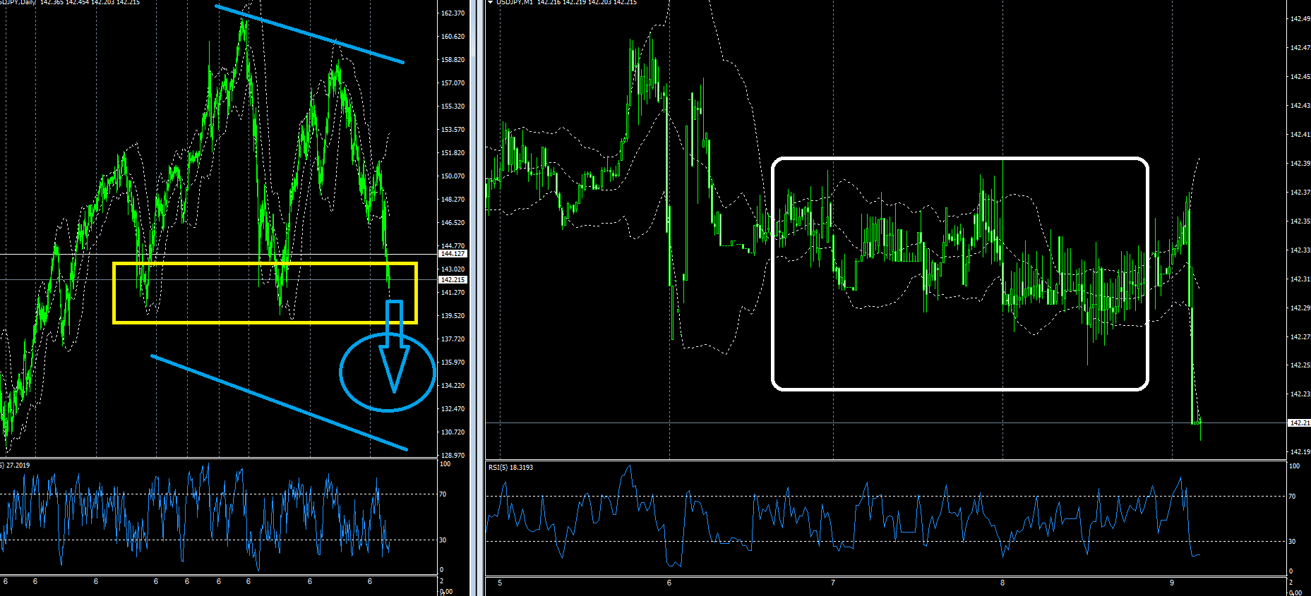 ドル円日足&1分足チャート