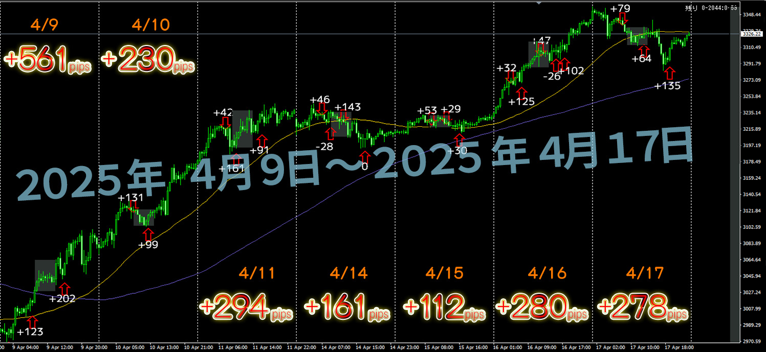 先週+831pips!4/14~4/17の部分をご覧ください。