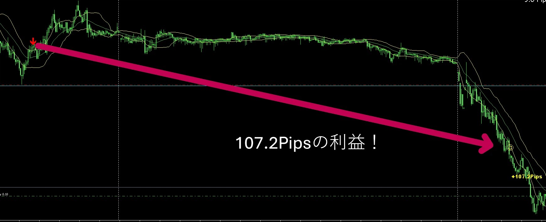 昨日のMiddleEdgeは、週末から保有していた売りポジションが見事に利確され、107.2pipsの利益を獲得できました!