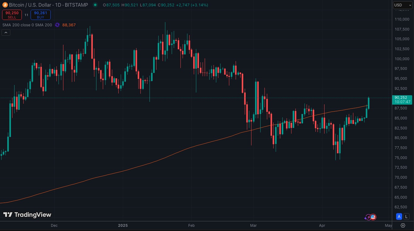 ビットコインは先週の85000ドルの水準からの上昇し、特にここ2日間で大きく上昇しており、現在90000ドルを超えました。