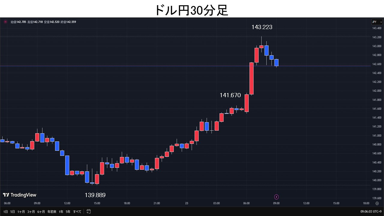 東京時間、ドル円は、ドル信認低下が意識される中、WSJ紙が「トランプ大統領が景気後退の責任をパウエルFRB議長に押し付けるための布石を敷いている」と掲載した事を受け、FRBの独立性に対する危機などからドル売りが加速。ドル円は、昨年9/16以来の安値となる139.88円まで下落。欧州時間、ドル円は買戻しが先行し140円台半ばまで上昇。NY時間、ベッセント米財務長官が「米中間の緊張緩和はごく近い将来に訪れると確信している」と話したと伝わったほか、レビット米ホワイトハウス報道官は「中国との関係は良い方向に進んでいる」「トランプ大統領は中国との合意に向けて準備を進めている」などと発言。米中の緊張緩和から、過度なリスク回避の流れが緩和され、円売り・ドル買いが先行し、ドル円は141.67円まで上昇。