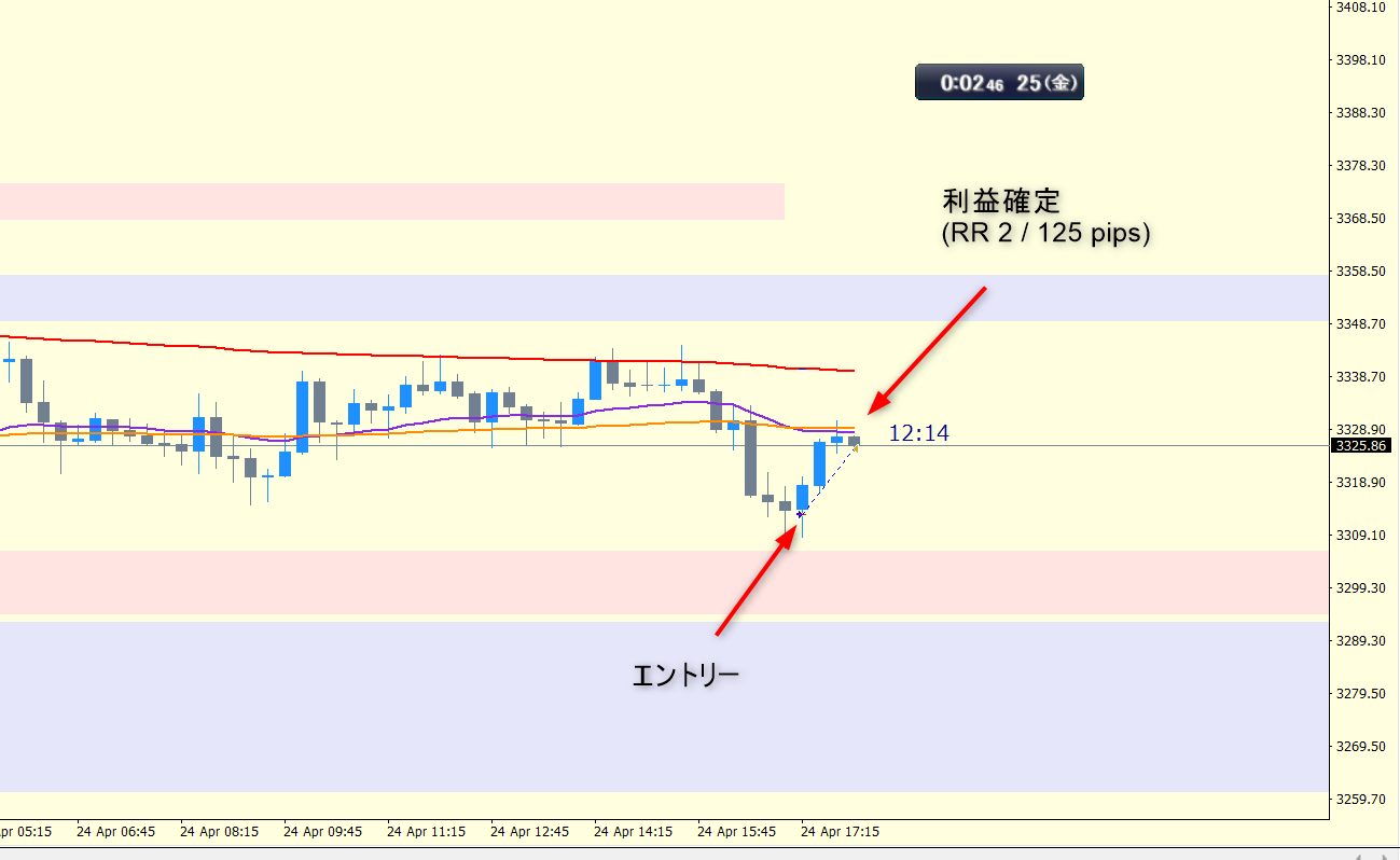 リアルトレード (ゴールド) 2025年4月24日(木) RR 2 (125 pips利確) 【Golden Strike】