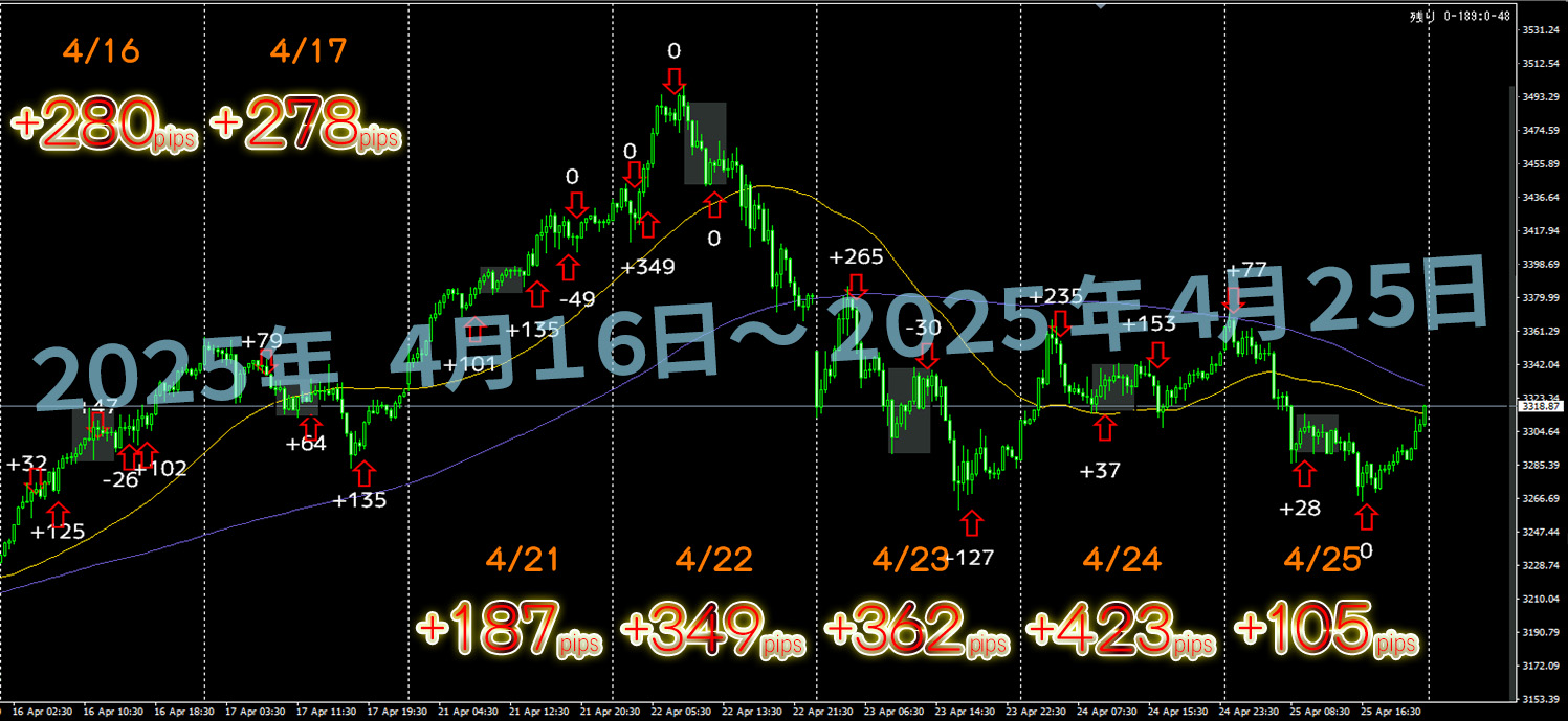 先週+1426pips!4/21~4/25の部分をご覧ください。