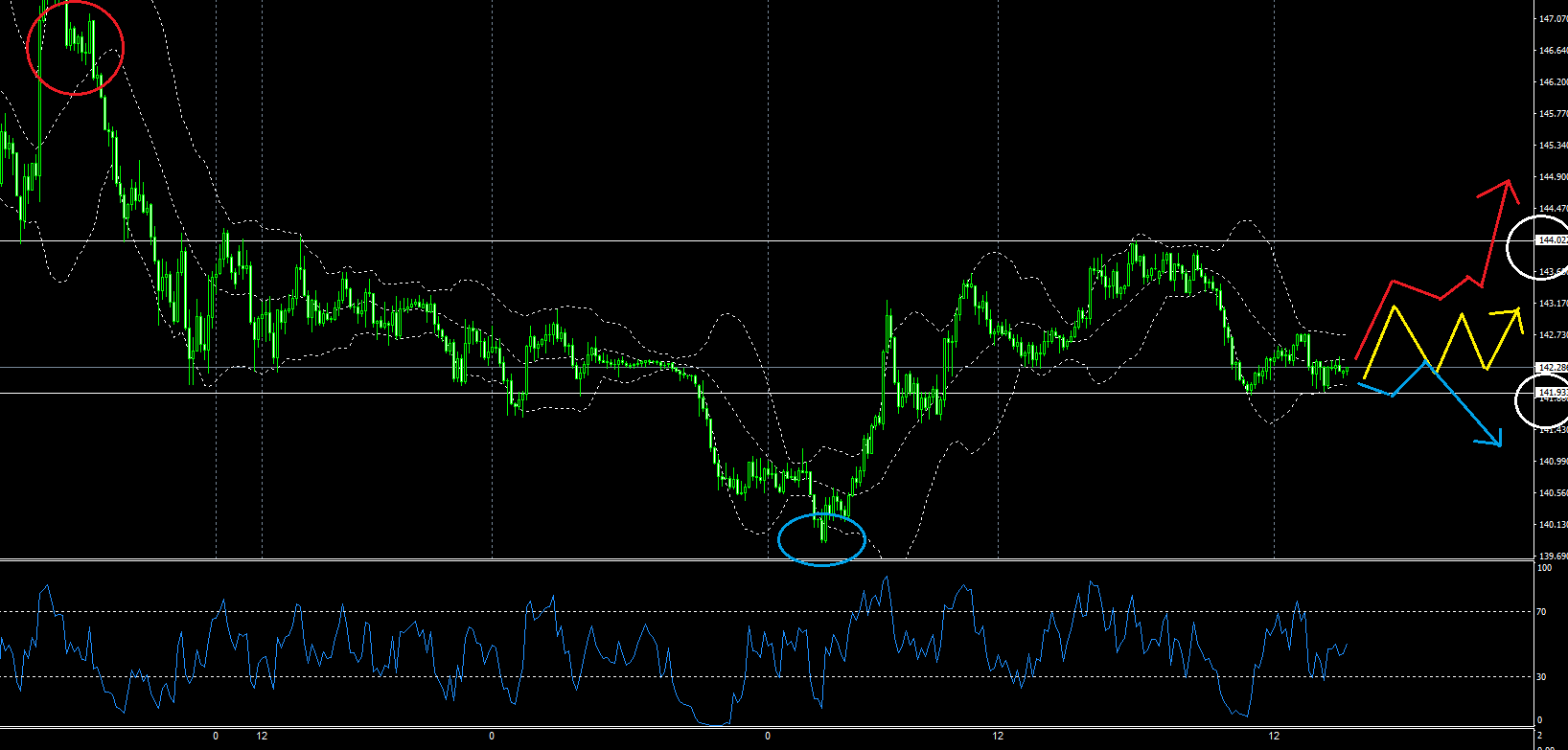 そうならない場合はレンジになるので14190付近を底に乱高下のレンジになります。