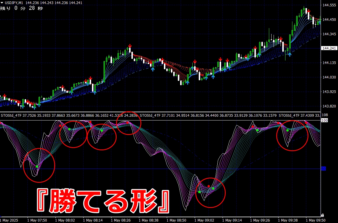 従いまして、上昇にしろ、下落にしろ、エントリーのねらい目は