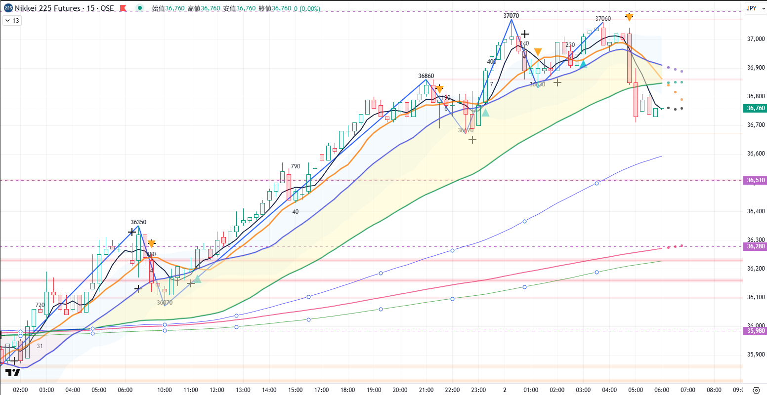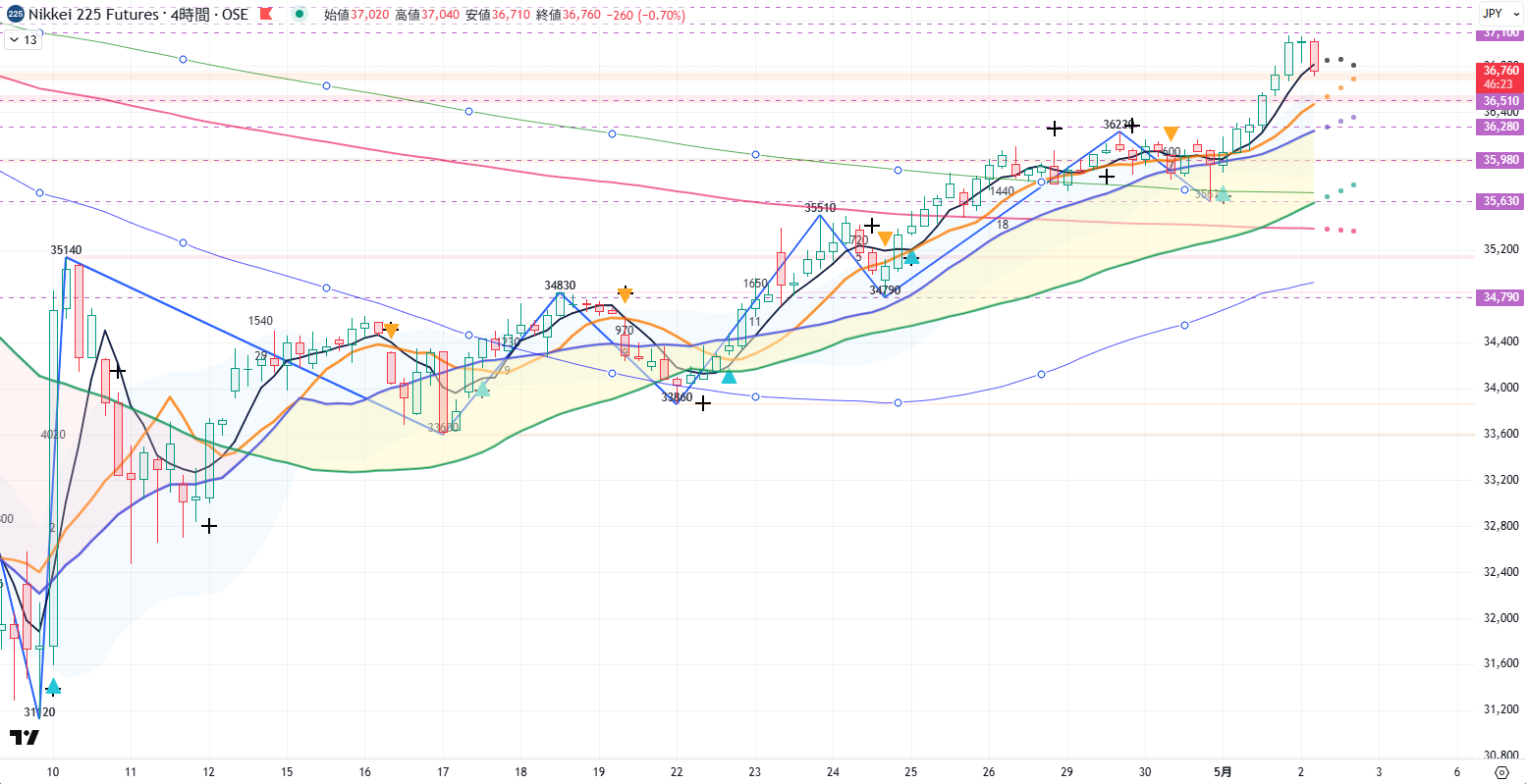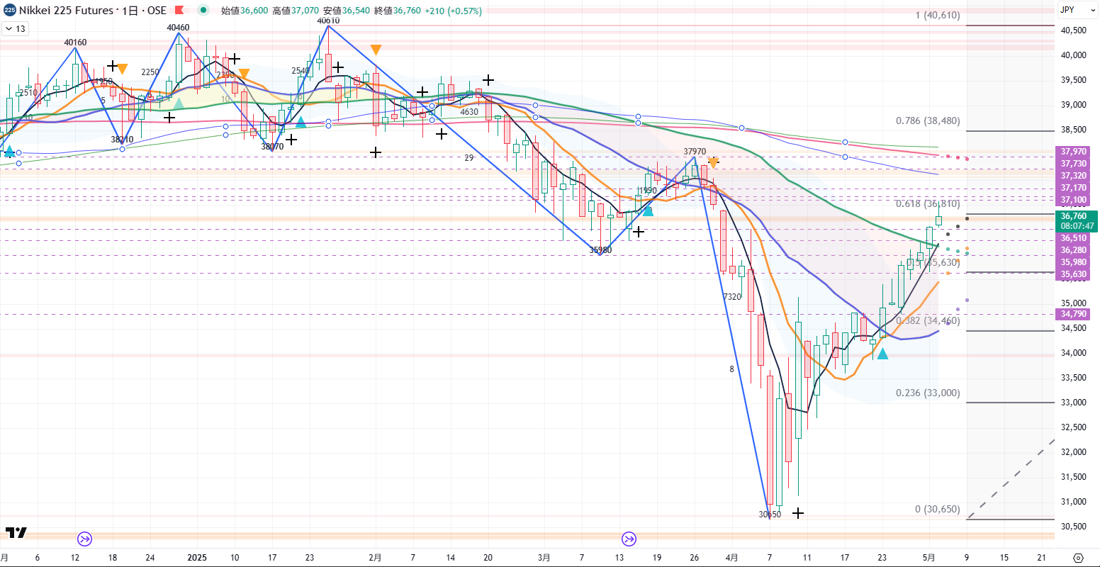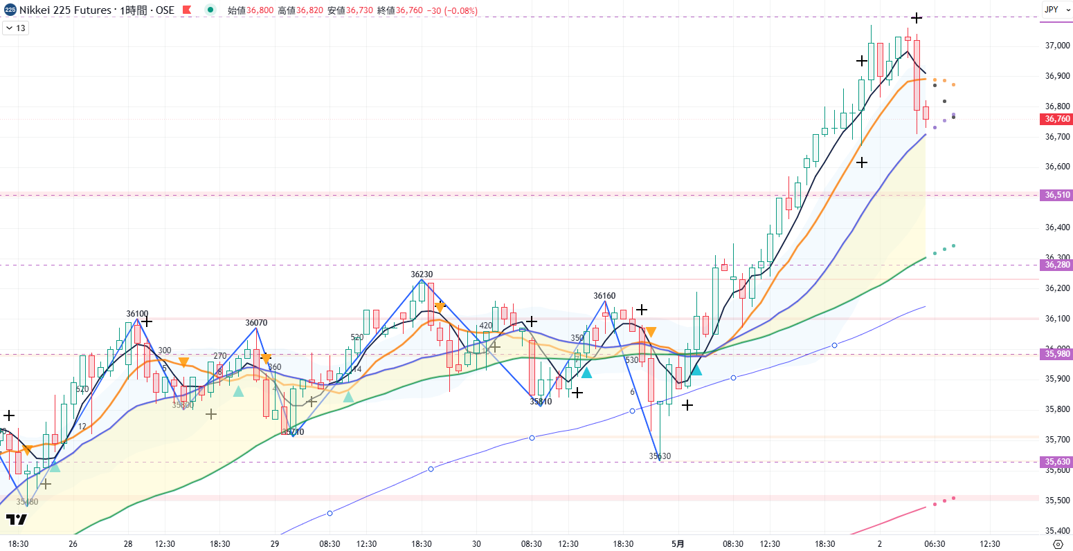 日足50MAを昨日は確定で超えたことで37060までナイトで上昇