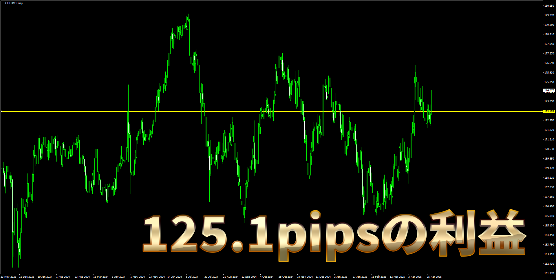 一撃125.1pipsの利益!:ローソク足トレード手法を使ったスイス円(CHF/JPY)の日足買いトレード