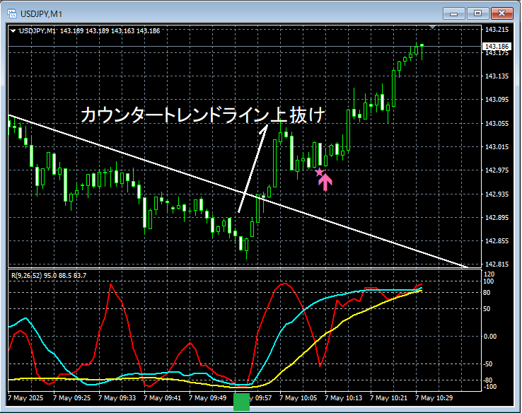【RCIを極めて勝つ!!】ドル円で1分足短期トレード(スキャルピング)を楽しもう 本日20250507のチャートから