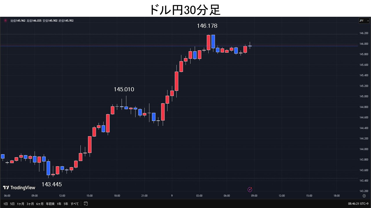 米英貿易協定締結合意・米中貿易交渉への期待で、ドル円は一時146円台。