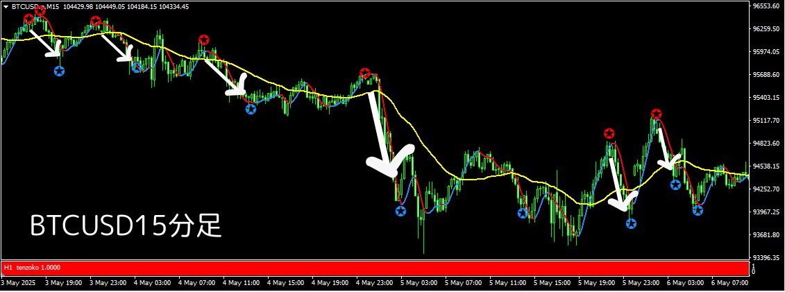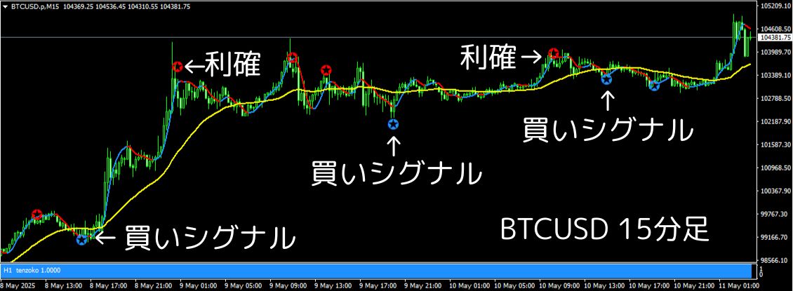 BTCUSD、直近のシグナル 天底トリガー インジケーター