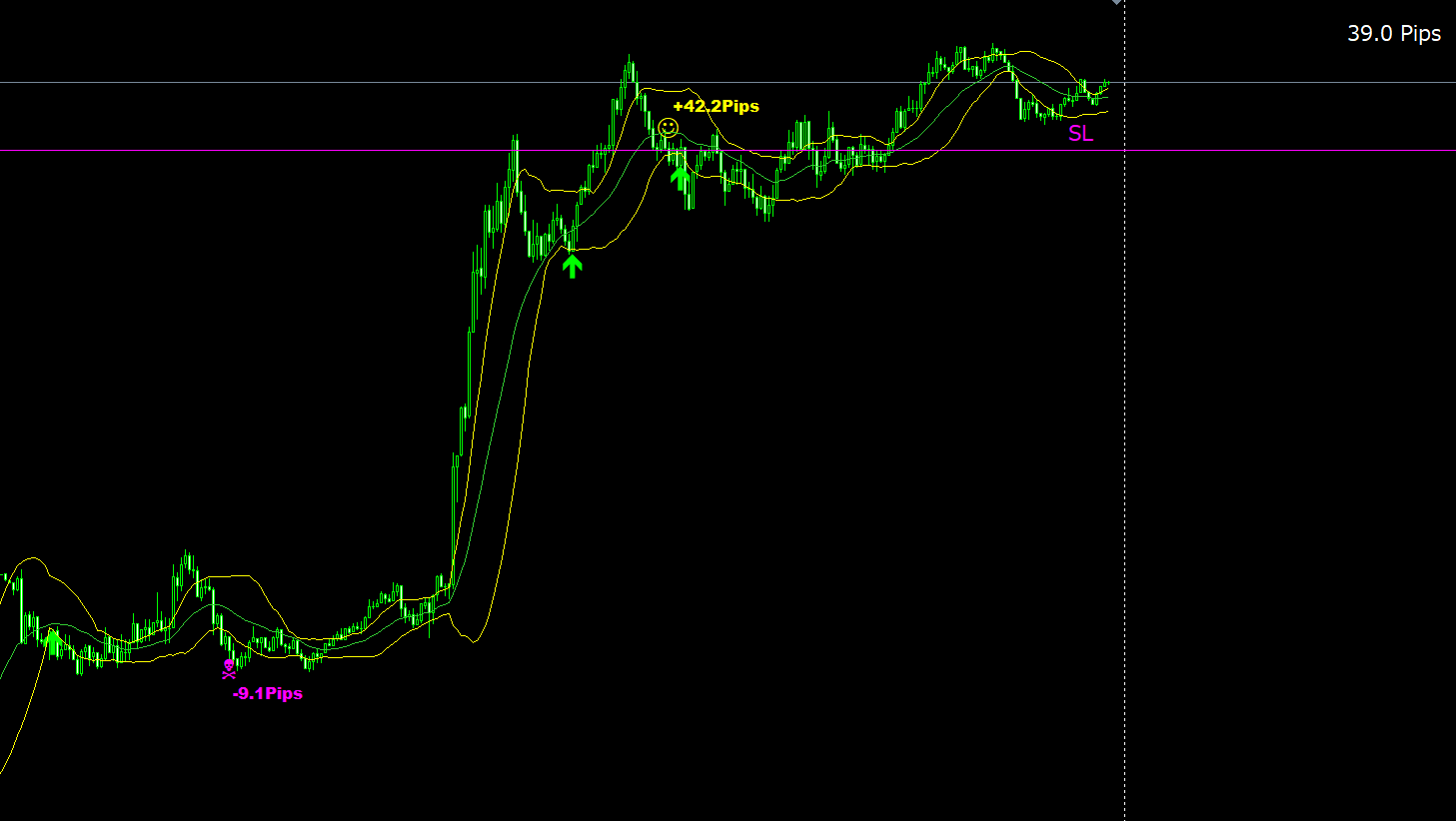昨日のMiddleEdgeは、最初のポジションがトレーリングストップにかかり-9.1pipsの損切。