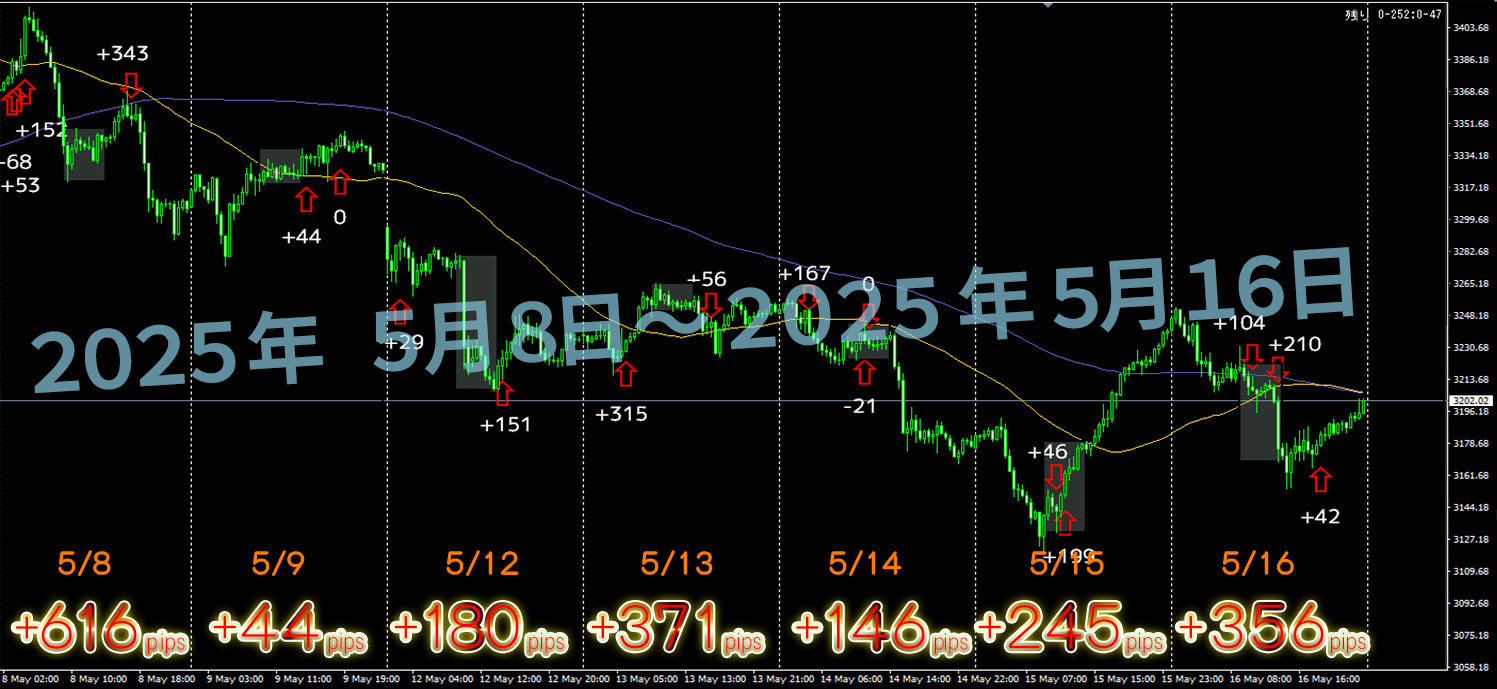 先週+1298pips!5/5~5/9の部分をご覧ください。
