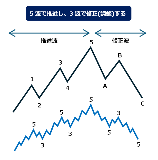 最もコアとなる考え方が、5波で推進し3波で修正するというものです。
