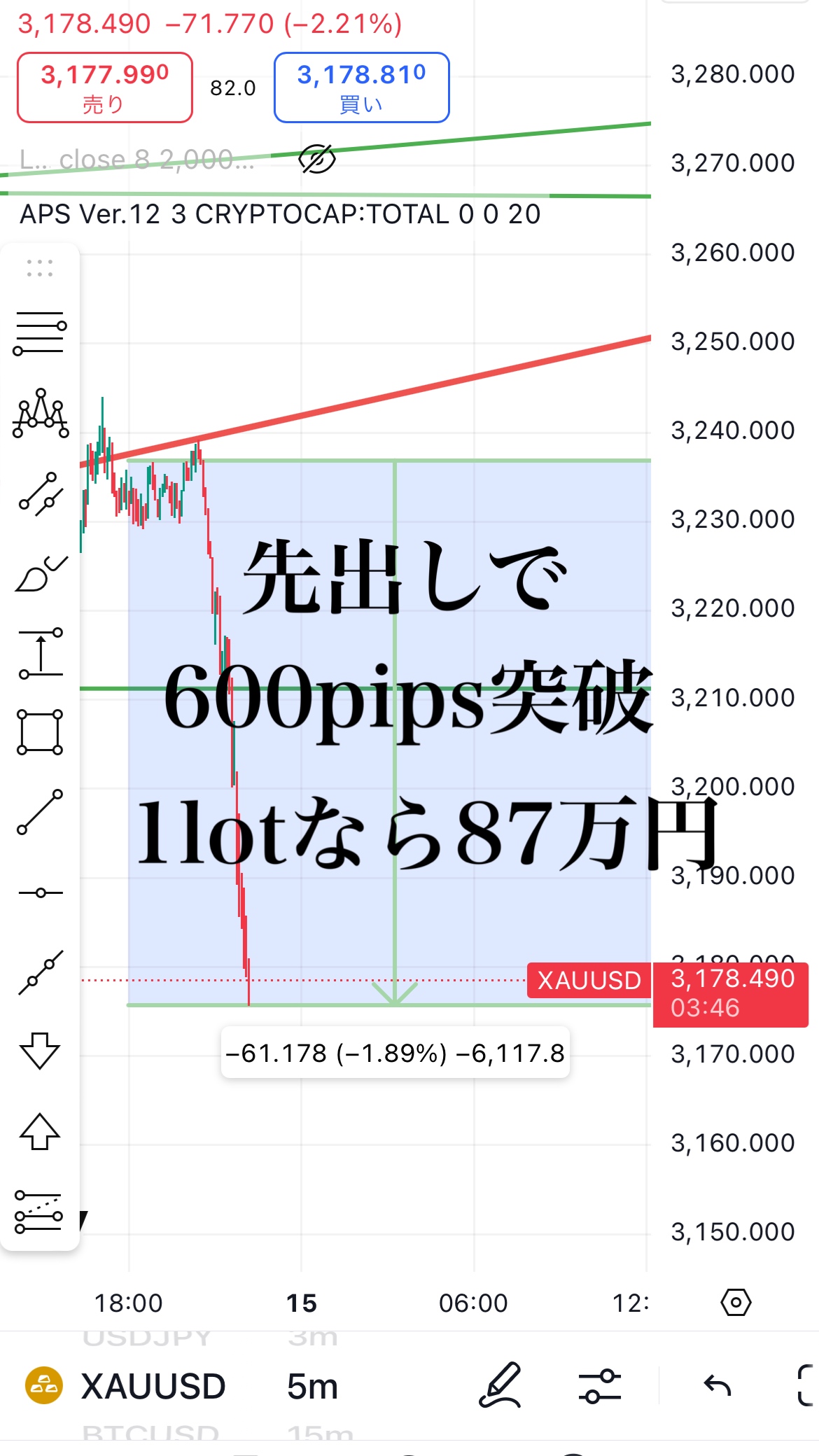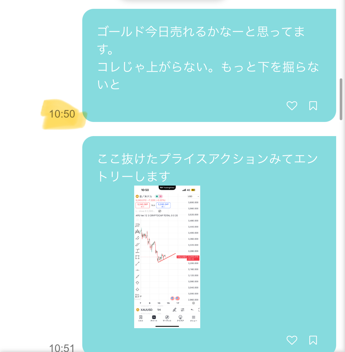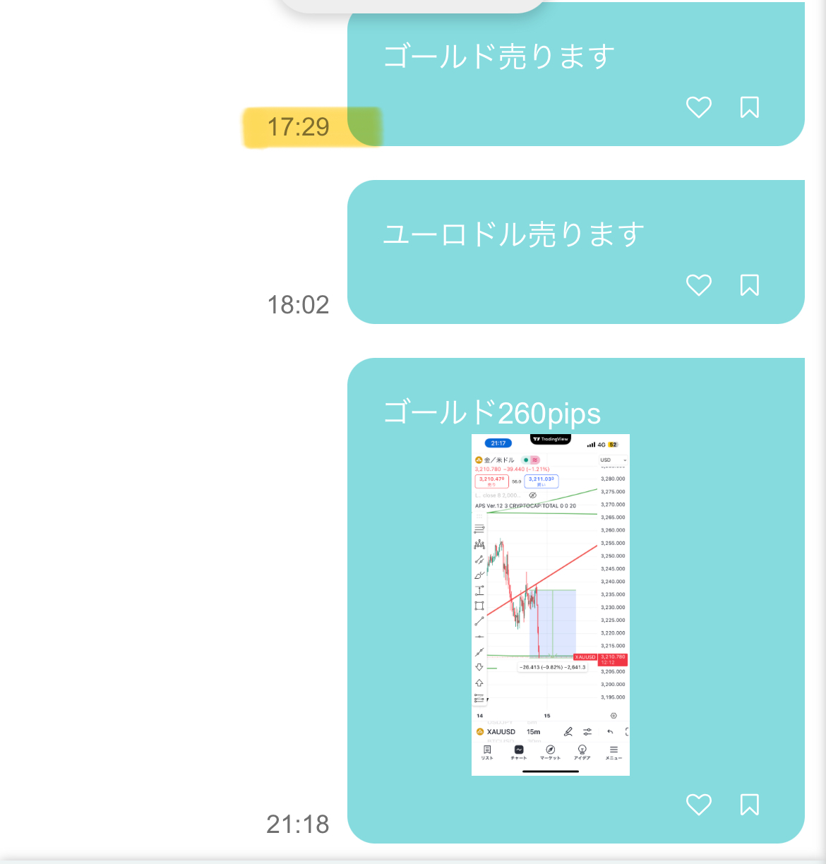 Mr.fxtrader オンラインコミュニティ先出し配信でゴールド600pips突破
