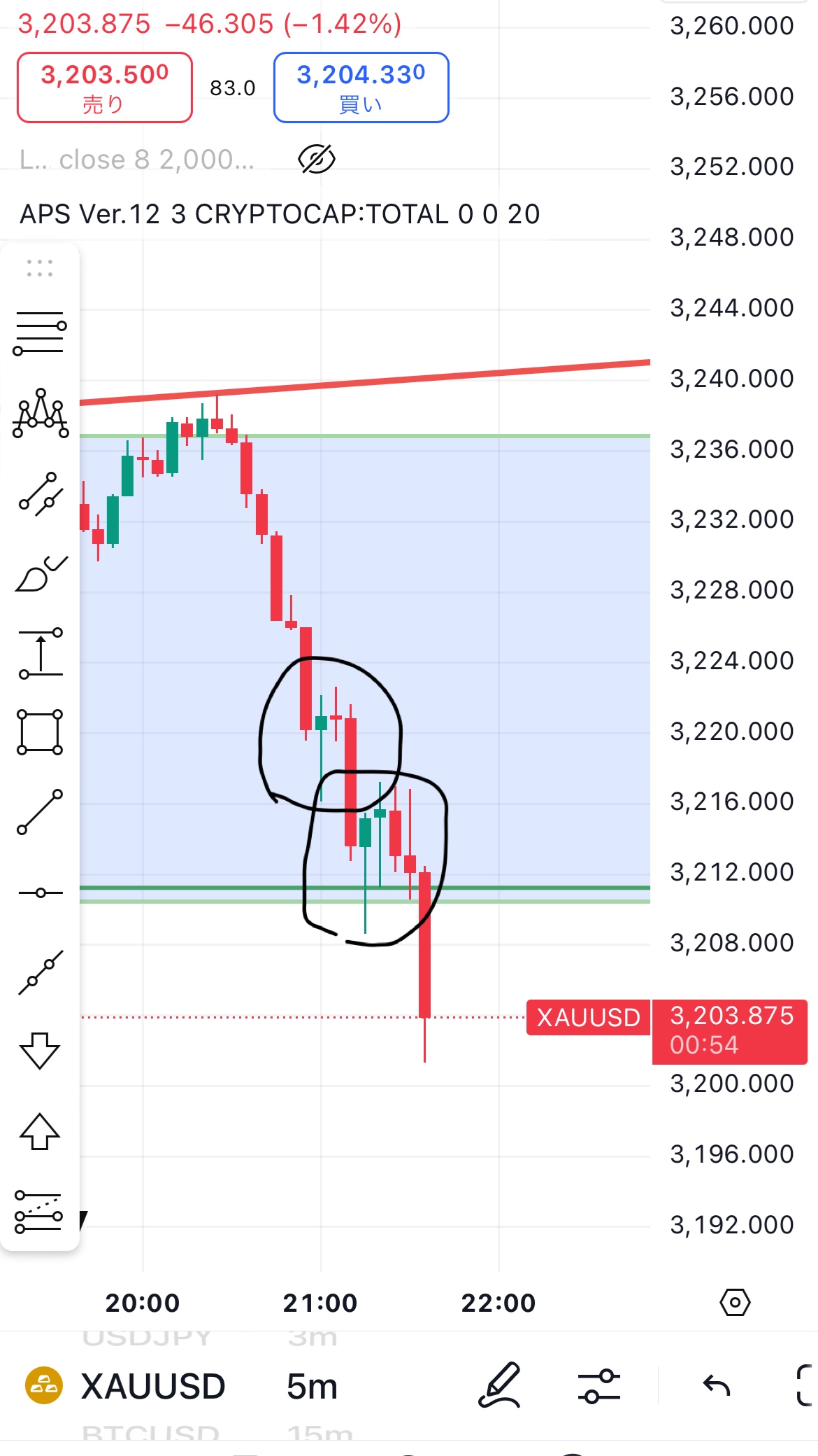 ①まず今日は朝から売りを狙っていました。イメージも出来ていました
