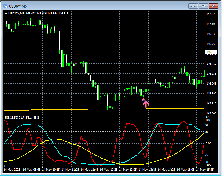 ドル円 USDJPY 5分足 2025年5月14日