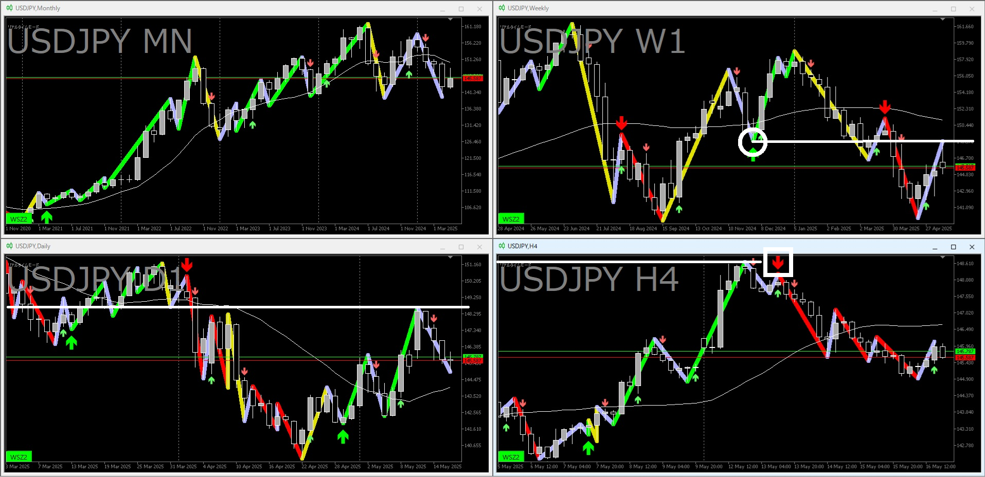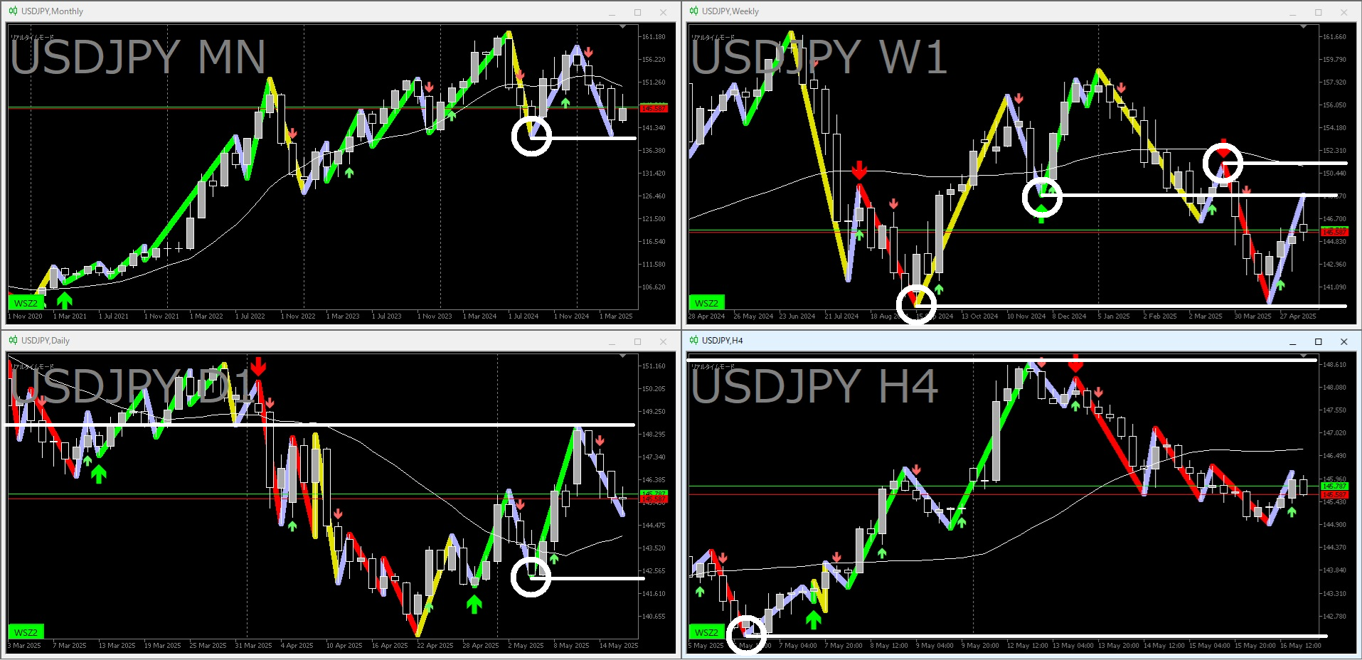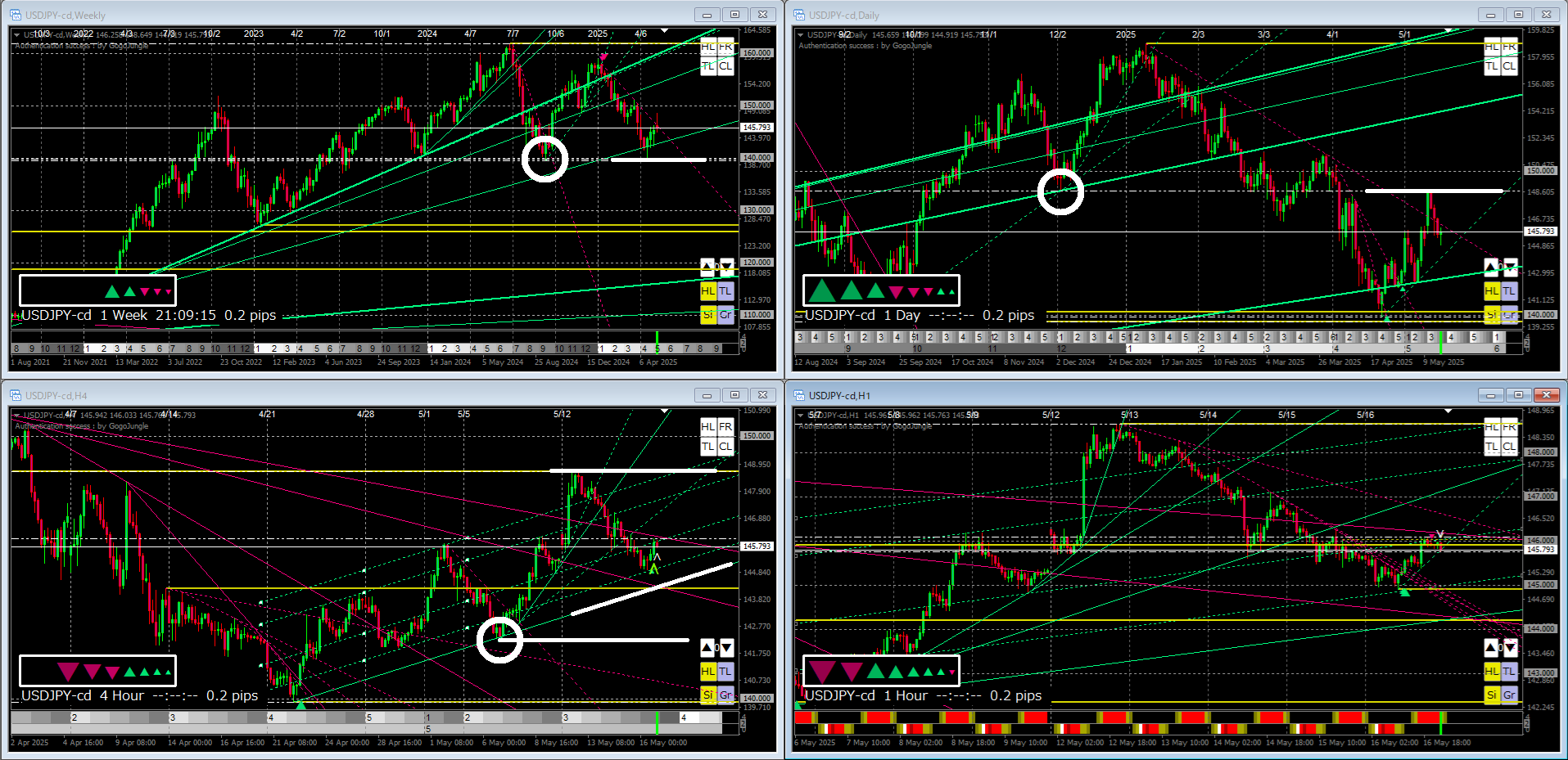 2025-5-12 > 2025-5-16 今週のドル円 + 来週のドル円 【トレンドラインPro2】