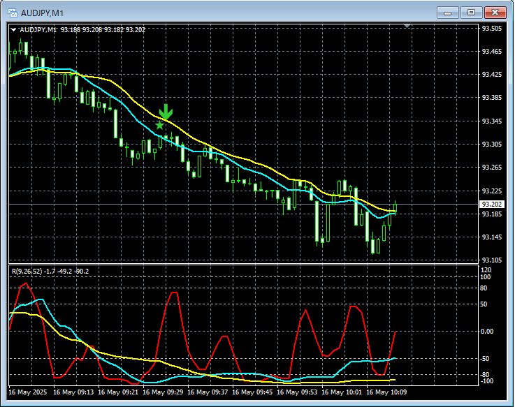 【RCIを極めて移動平均線フィルターで勝つ!!昨日の豪ドル円 20250516】mBDSRの戻り売りサイン