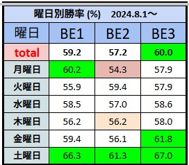 『BE』は土曜日の勝率が高いです。戦略の一つとしてご検討くださいませ。