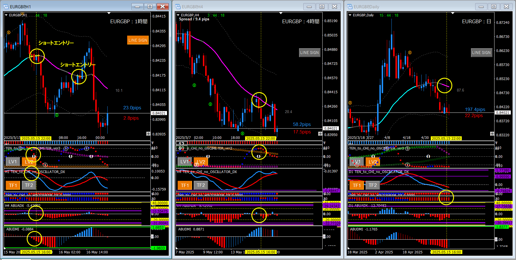 ユロポン(EURGBP)/ 1時間足+4時間足+日足 過去検証