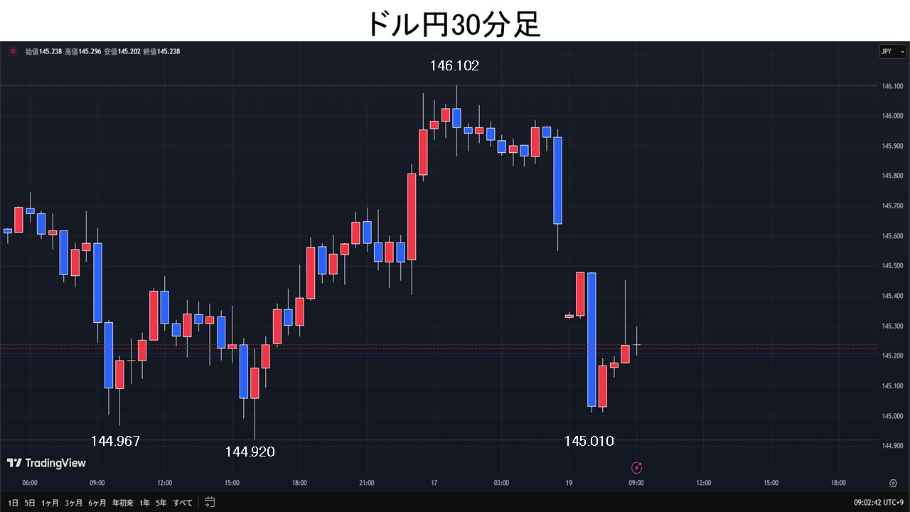 東京時間、ドル円は、前日の安値145.41円を割り込むと売りが先行。時間外の米10年債利回りが低下もあり、一時144.96円まで下落。その後、台湾政府高官が「米国との貿易協議には、為替は含まれていない」との発言などもあり145.46円まで買い戻された。欧州時間、円安是正議論への思惑が広がる中、欧州勢が円買い・ドル売りで参入すると、ドル円は一時144.92円まで下落。その後は、独DAXが史上最高値を更新するなど、欧州株が堅調に推移した事などもあり、ドル円は買戻しが先行。NY時間、5月米ミシガン大学消費者態度指数速報値は予想下振れとなるが、同時に発表された1年先の期待インフレ率が予想上振れとなると、ドル全般に買いが先行し、ドル円は146.10円まで上昇。その後、ドル円は引けにかけて、米格付け会社ムーディーズが、米国の信用格付けを「AAA」から「AA1」に引き下げた事も相場の重しとなった。