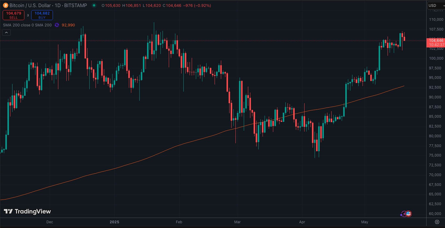 ビットコインは先週の103000ドルの水準から更に上昇し現在107000ドル(1520万円)の水準に位置しています。