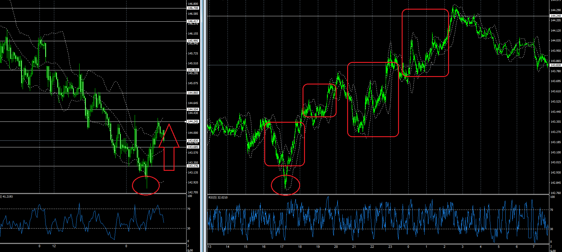 1分足右チャートの赤□は、概ね30P~50PのV谷です。